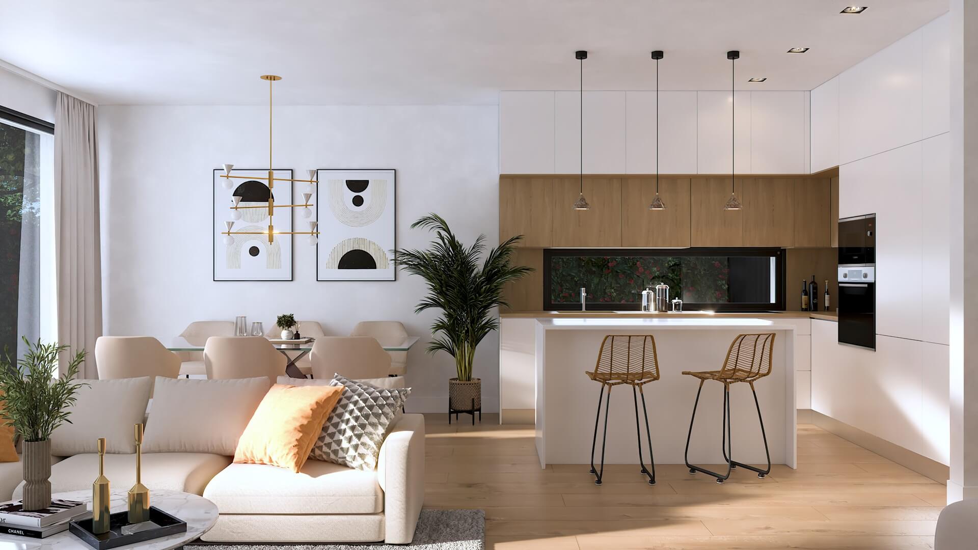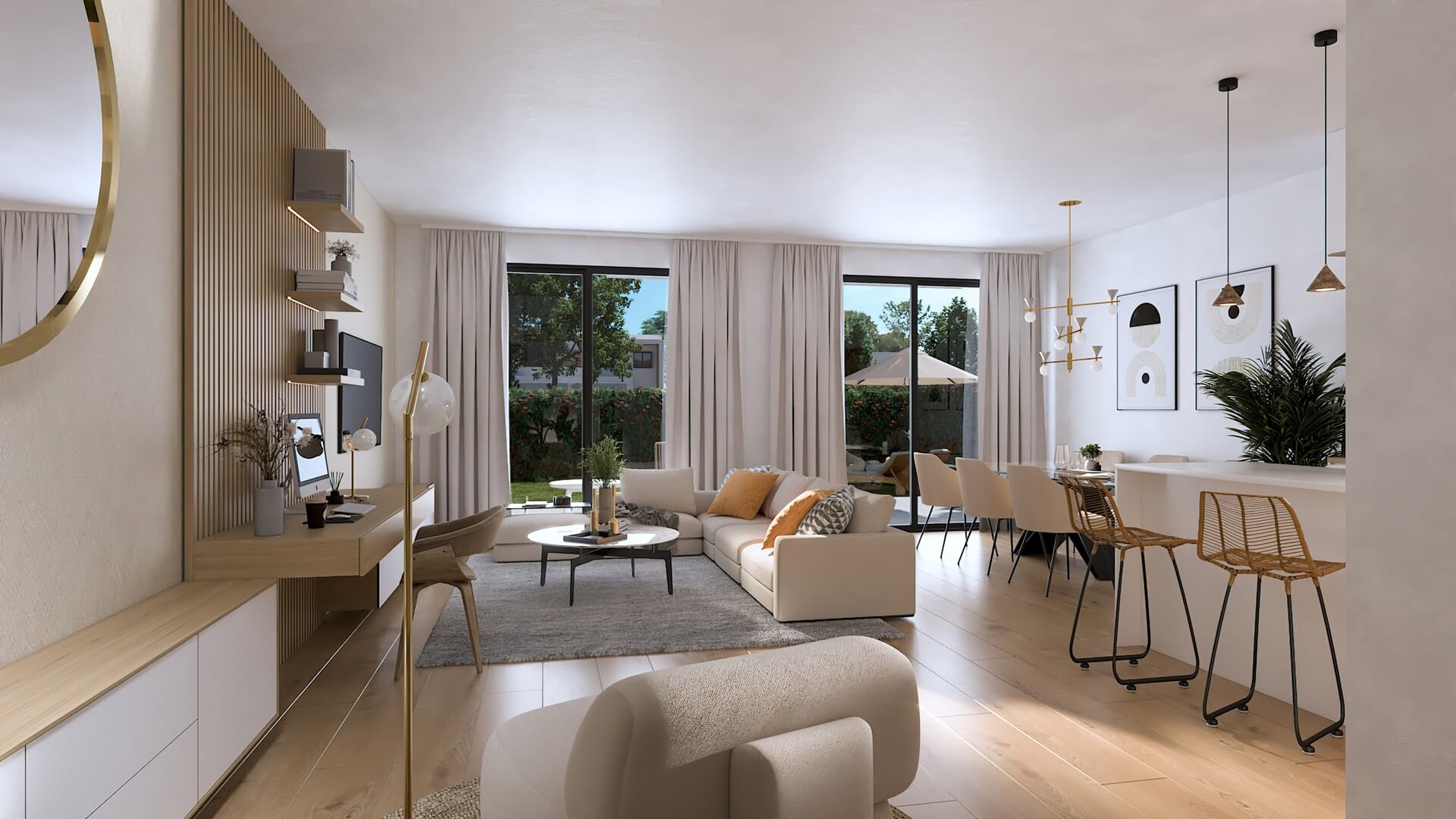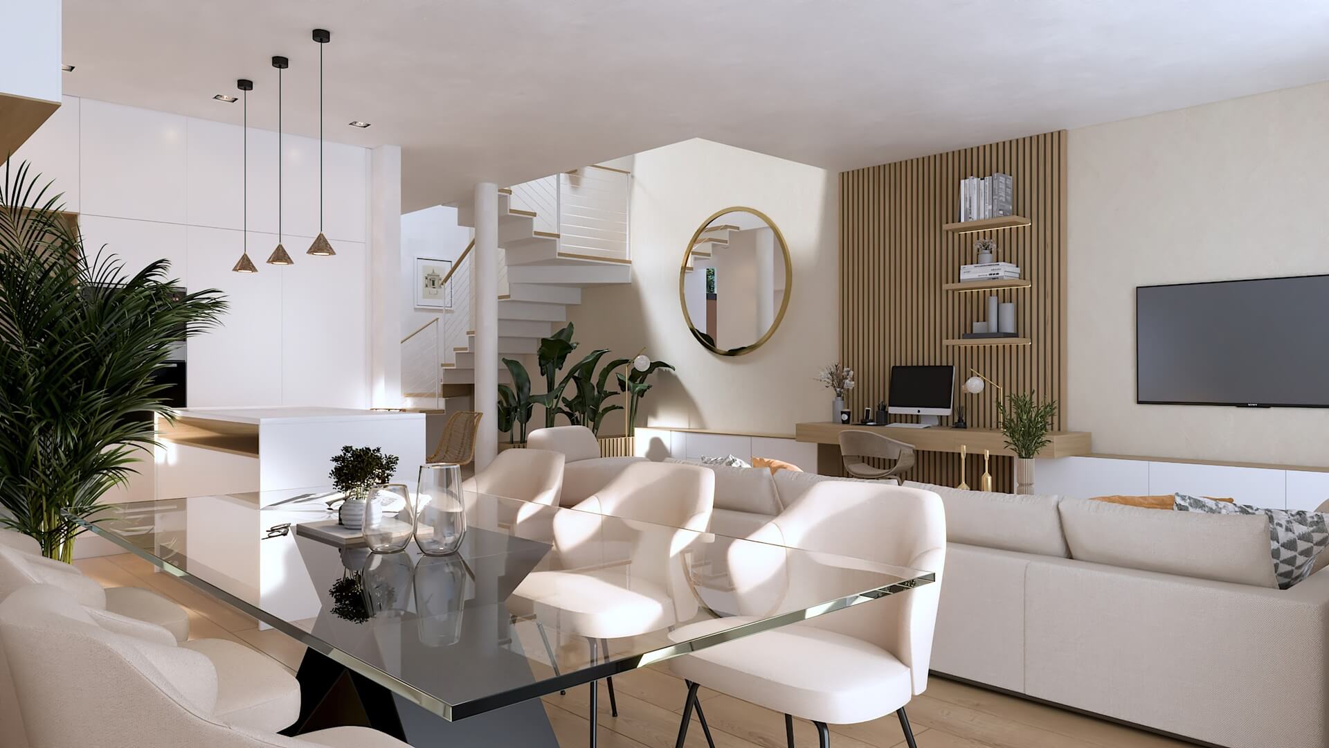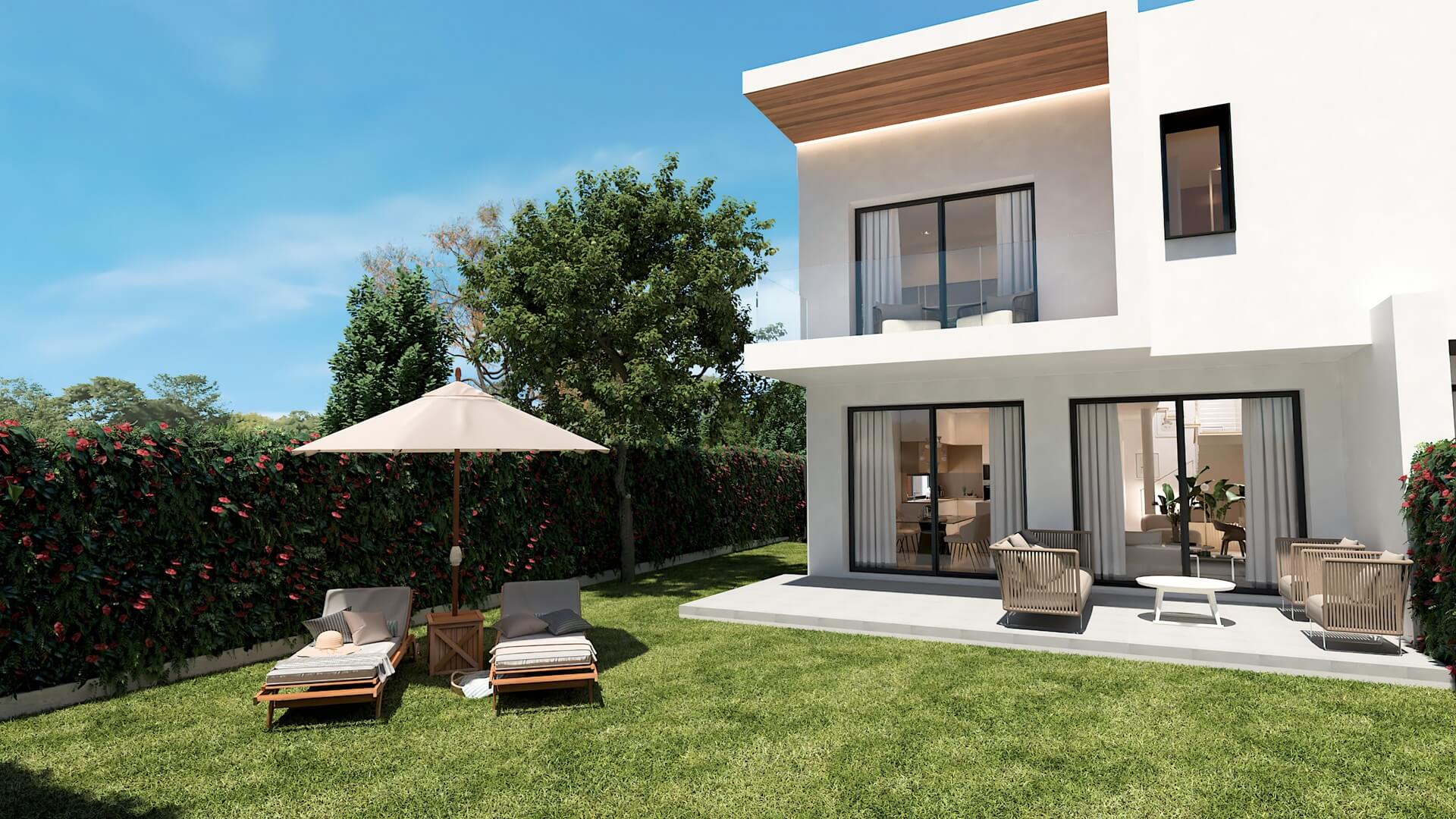 Viviendas de 4 y 5 dormitorios distribuidas en dos alturas, con amplias zonas exteriores privadas de entre 166 m² y 282 m², ideales para disfrutar en familia.