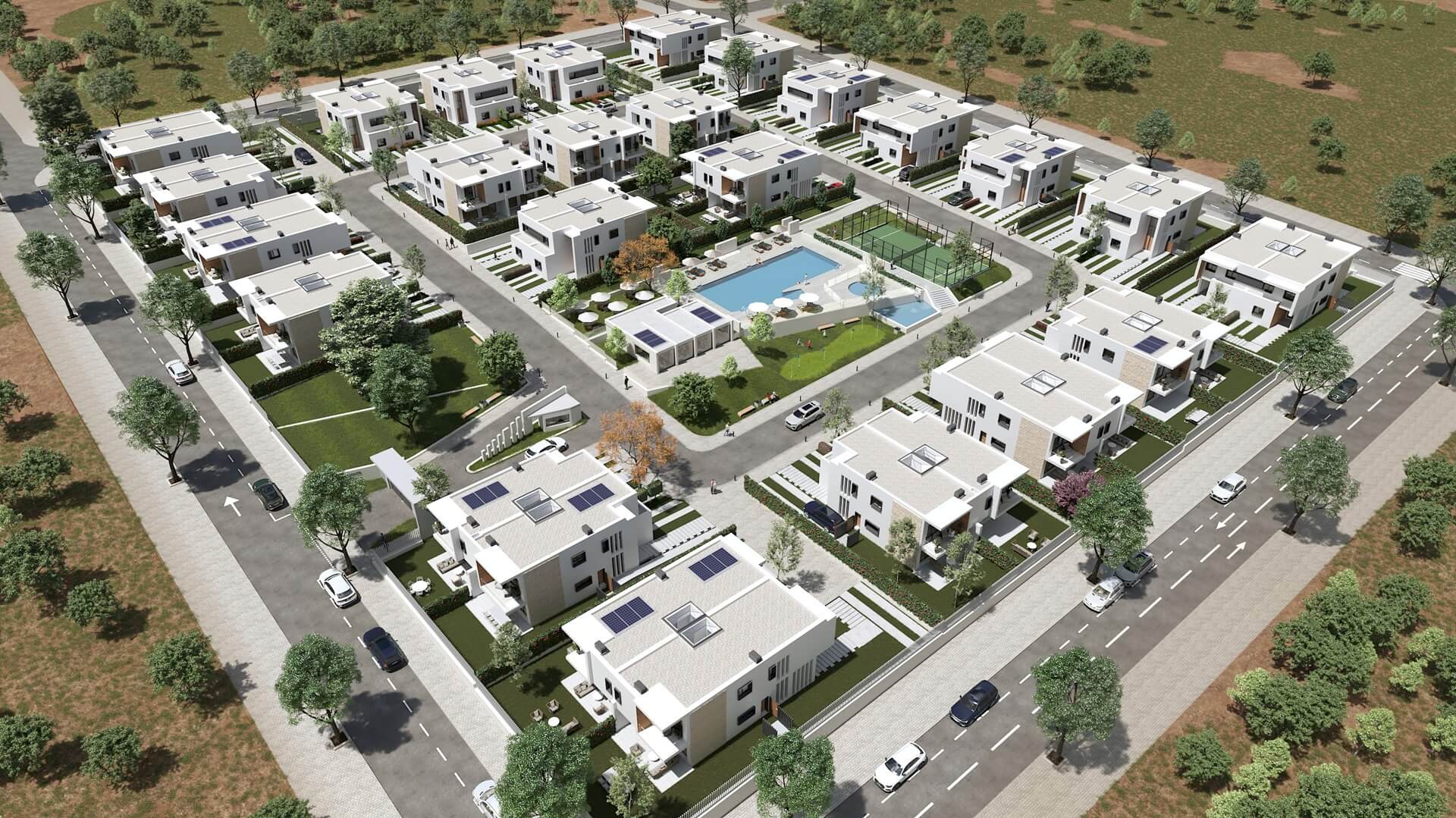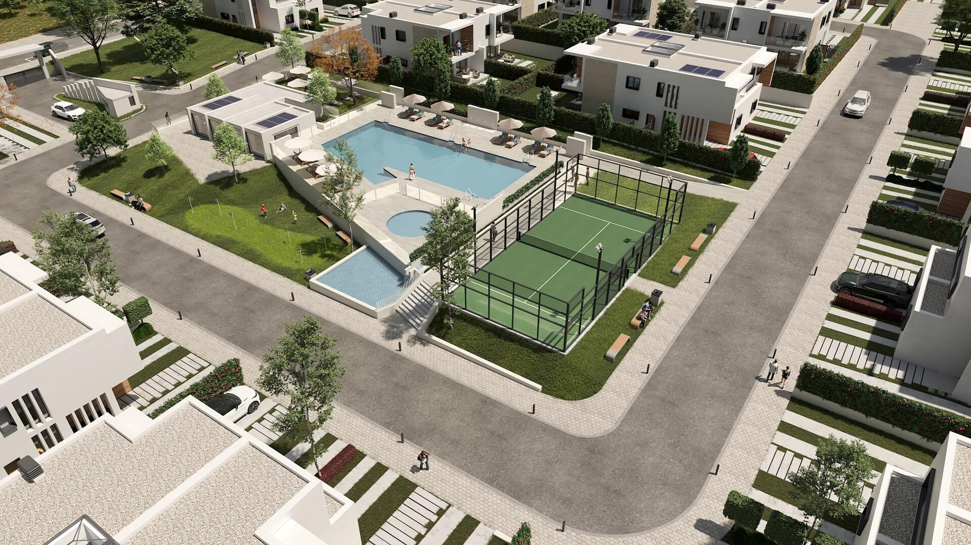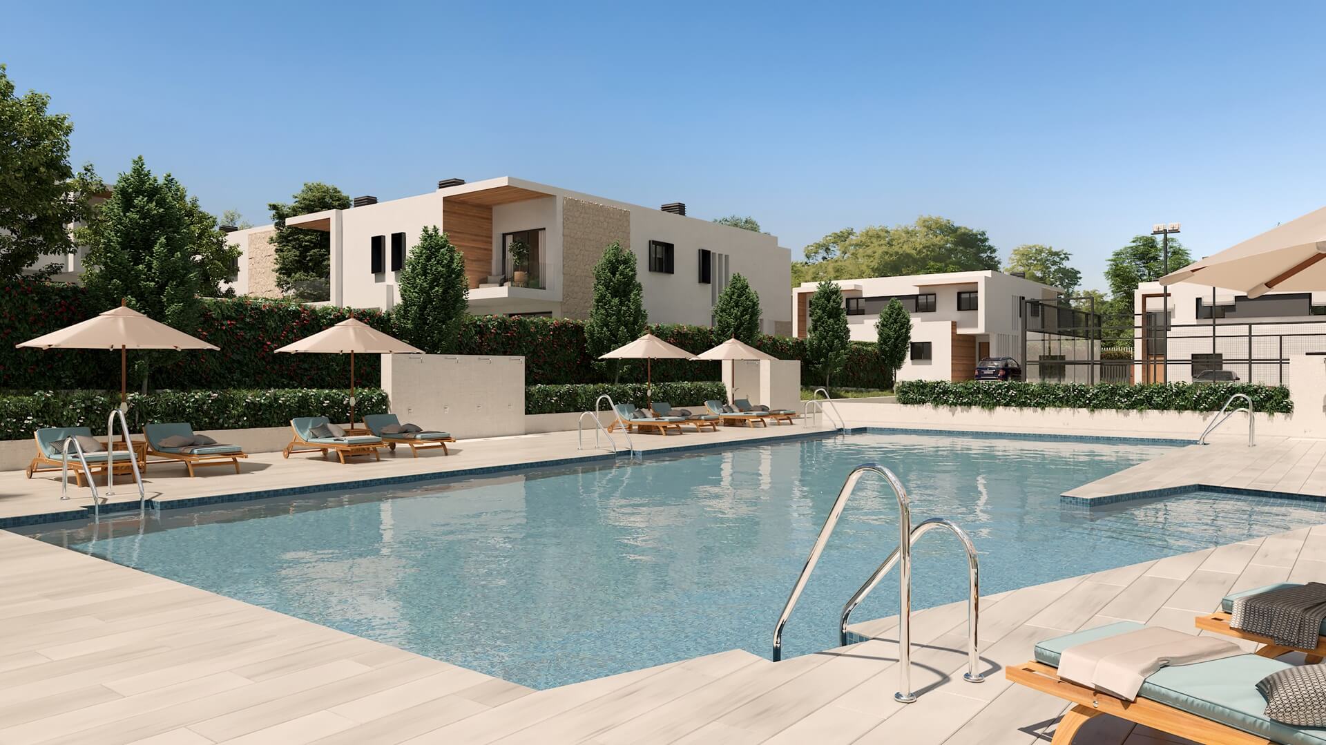 Monte de la Villa Class es una moderna urbanización compuesta por 48 chalets de 4 y 5 dormitorios, con zonas comunes ajardinadas, piscina, pista de pádel y parque infantil.