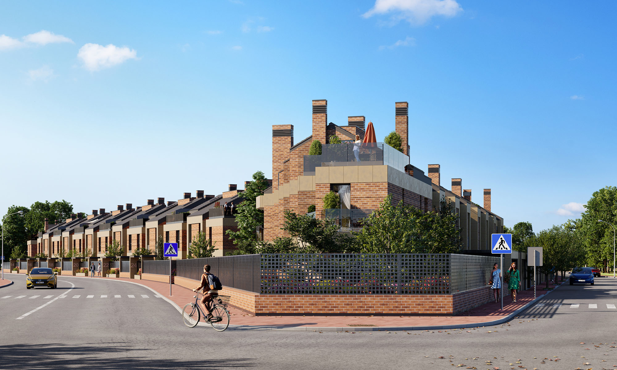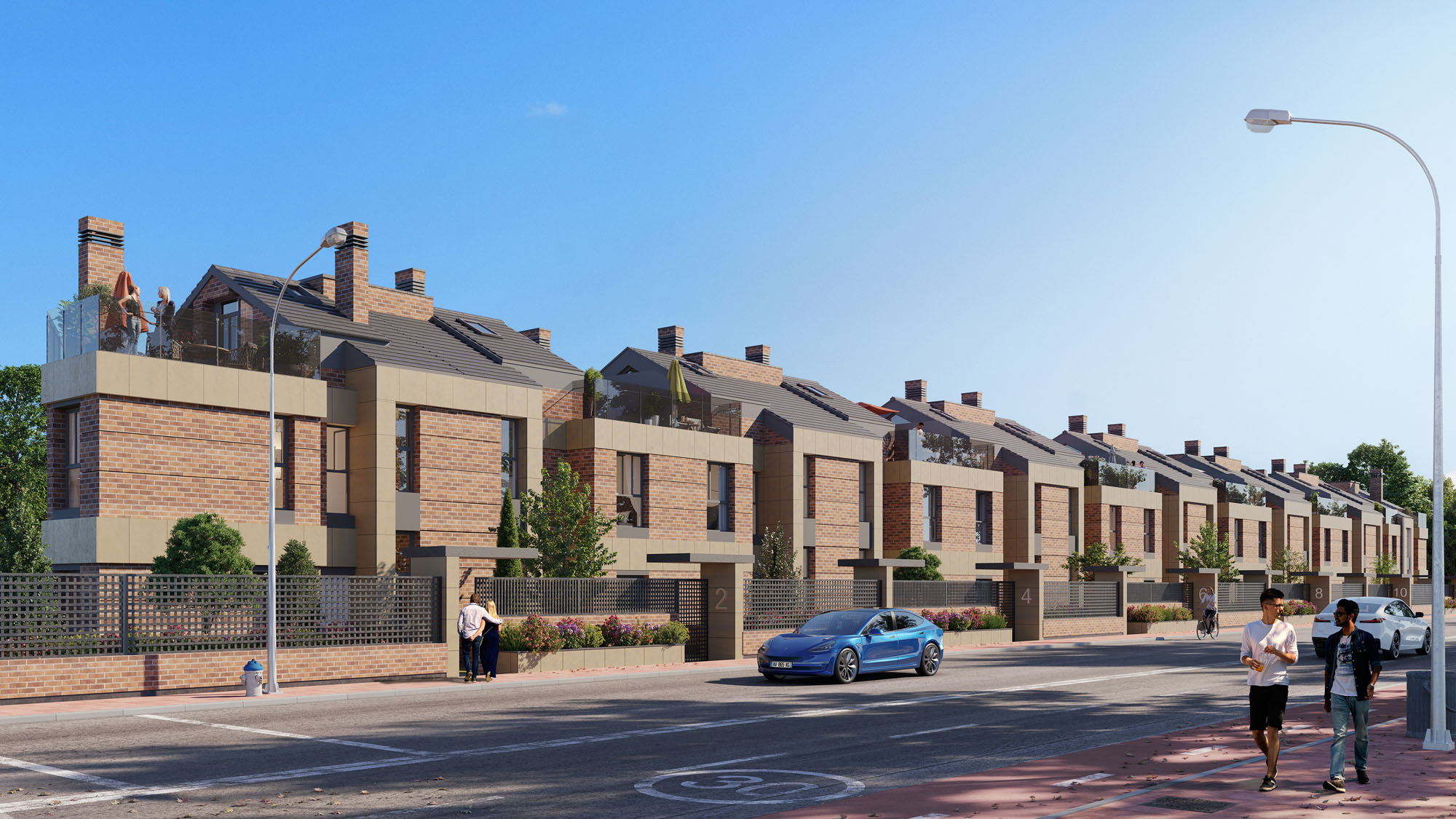 La promoción cuenta con 45 viviendas de 4 y 5 dormitorios, ubicadas en parcelas individuales con jardín privado, y en una parcela común con más de 10.000 m² destinados a zonas comunes ajardinadas y piscina. Cada vivienda dispone de dos plazas de aparcamiento y un trastero.